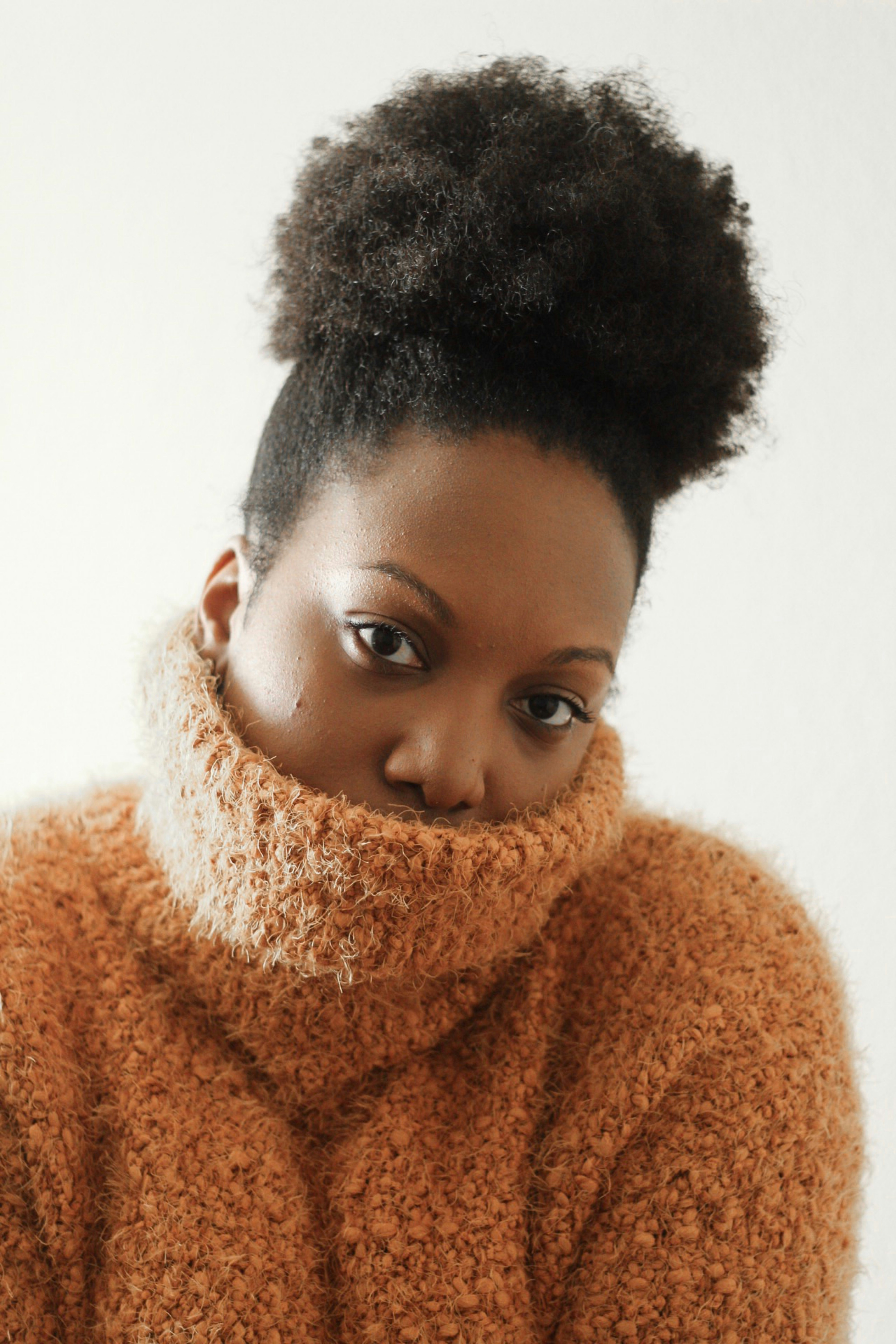 You dont always have to go for the common black and red plaid shirts. Wearing high turtlenecks like this can feel weird but they will keep you warm cover up your double chins and look chic af. Start with Plain Dark Colours.